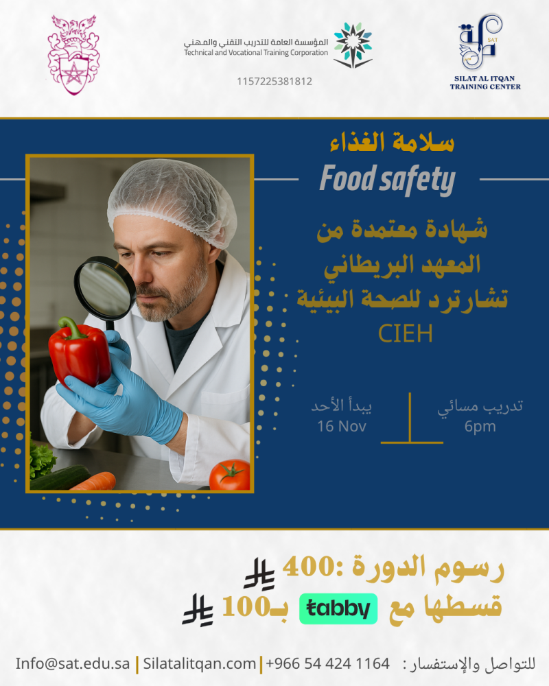 في عالم تكثر فيه حالات التسمم الغذائي، فإنّ أول خطوة نحو الوقاية تبدأ من معرفة بسيطة يكتسبها العامل في سويعات قليلة… ولكنها قد تمنع كارثة صحية كاملة.